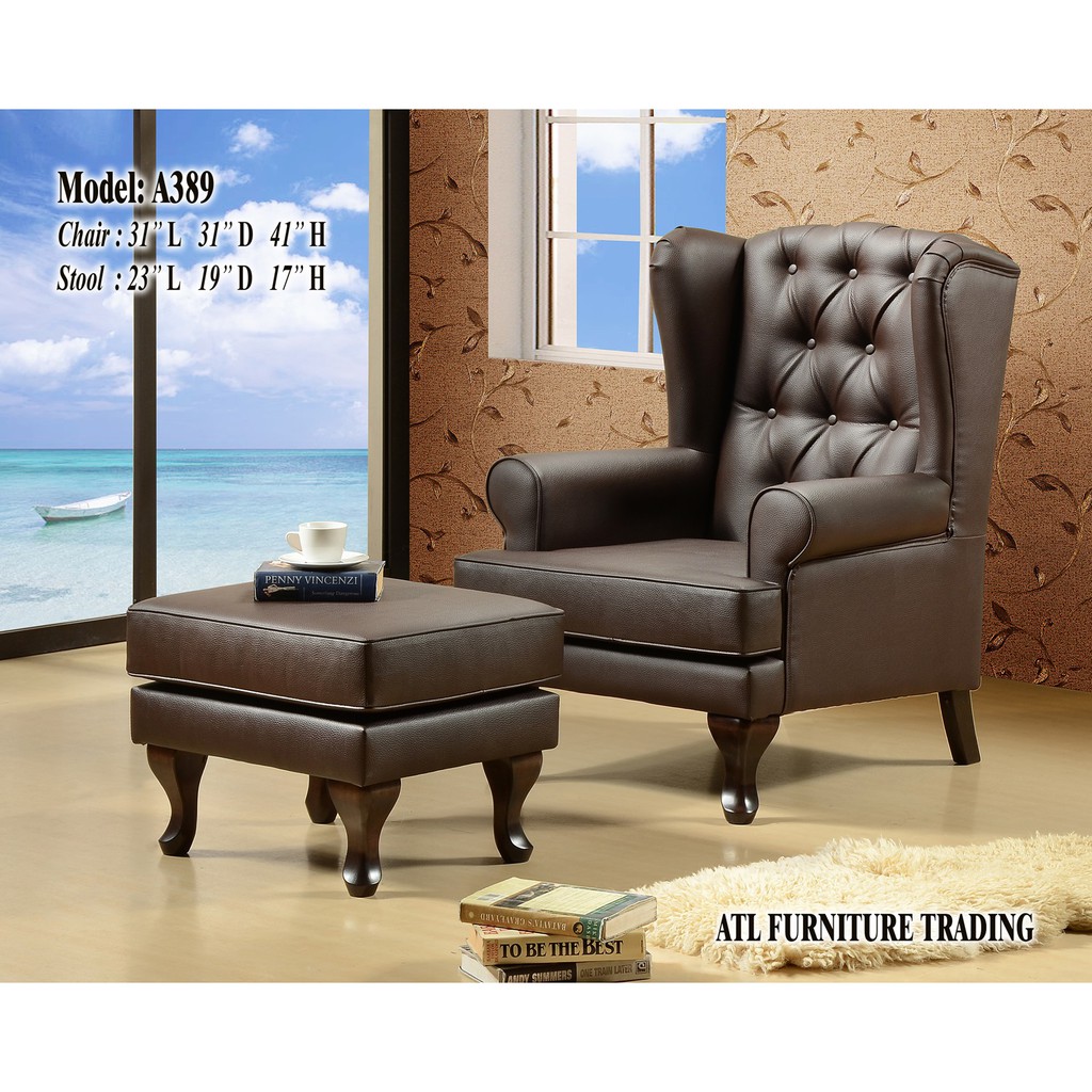 Classic Vintage Leather Wing Chair And Stool Shopee Malaysia